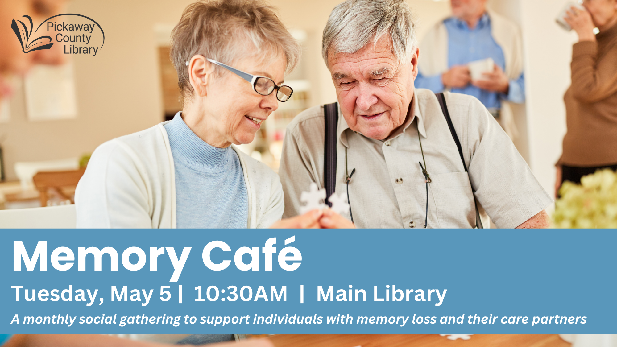 The Memory Café at Pickaway County Library offers a welcoming, stigma-free space for individuals experiencing memory loss and their care partners. This social gathering provides an opportunity to connect with others, enjoy engaging activities, and build a sense of community in a relaxed and supportive environment.